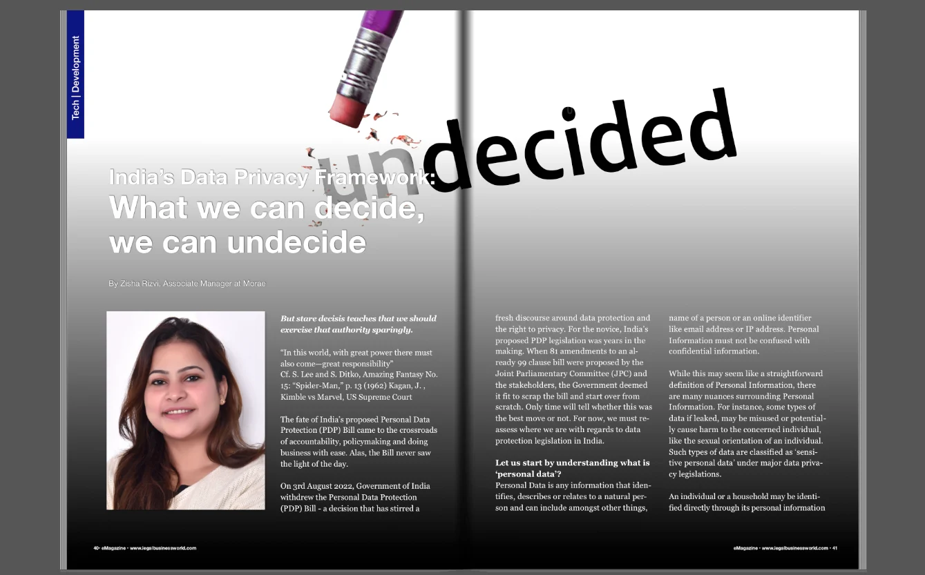 Morae’s Zisha Rizvi writes in at recent edition of Legal Business World about India’s on and off again (soon to be on again) data privacy legislation and its growing impact on organizations around the world that do business in India.